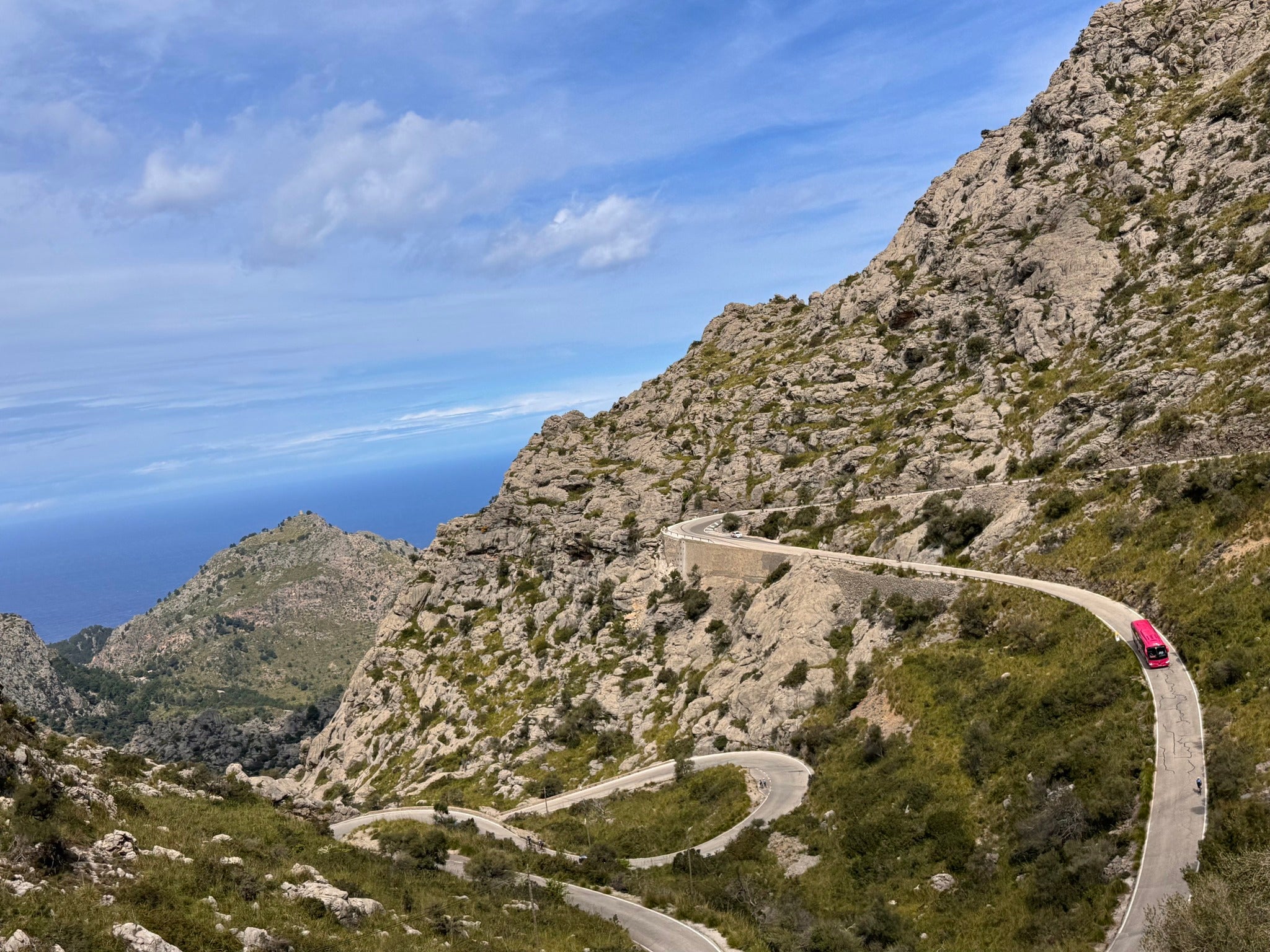 Vi cyklar iväg efter tidig frukost på hotellet, och cyklar sedan hela bergskedjan "på rätt...